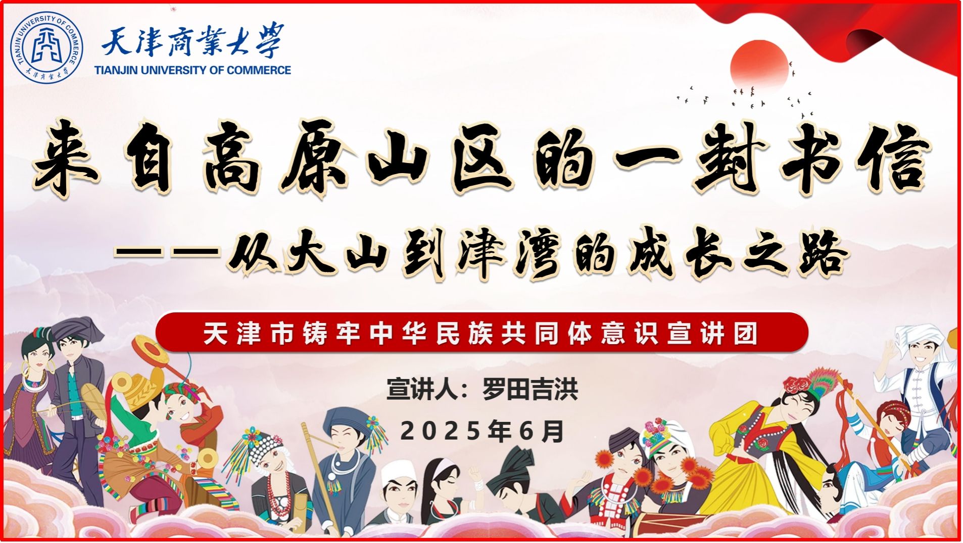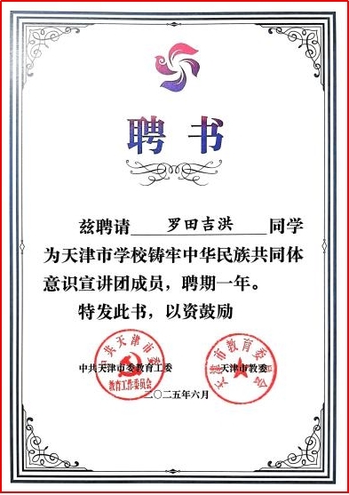 为贯彻落实党的二十届三中全会精神和习近平总书记在全国民族团结进步表彰大会上的重要讲话精神,日前,市教育两委公布天津市第三批学校铸牢中华民族共同体意识宣讲团成员名单,我校经济学院2022级本科生罗田吉洪成功入选。