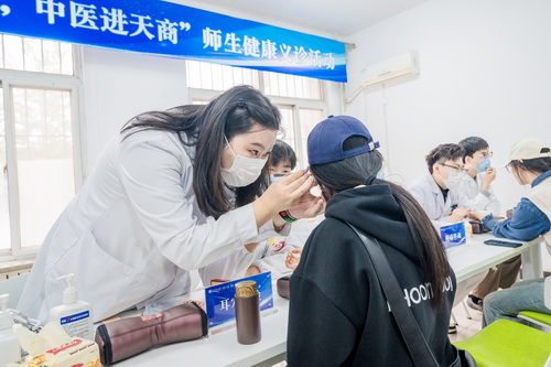活动当天,学工楼 “一站式”学生社区义诊点人头攒动。来自天津中医药大学博硕士服务团的队员们,为我校师生提供了全方位的健康服务,针灸推拿、脉诊舌诊、穴位贴敷、耳穴压豆、健康咨询,慢性病防治指导……每一项服务都细致入微,活动特别融入“药食同源”理念,根据个体体质定制个性化食疗方案,让师生切身感受中医药文化的实用价值,赢得了师生们的一致好评。