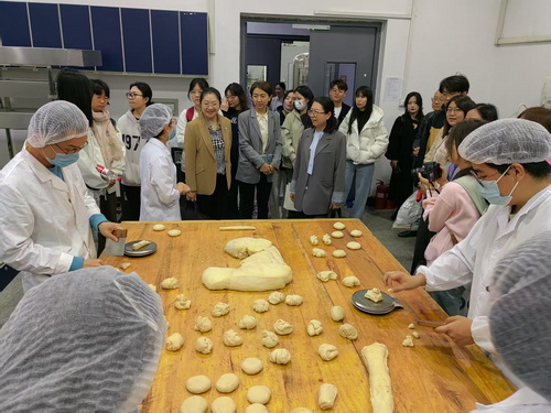 天津中医药大学公共卫生与健康科学学院师生参观并体验了我校生物技术与食品科学学院烘焙实验室的陈皮面包制作过程。学术交流时,两校师生围绕药食同源展开深度研讨。我校大健康协同创新研究院院长赖长江生、制药工程系青年教师孙嘉辰以《中药质量化学—生物评价研究》《多组学整合分析揭示药用植物生理机制与质量调控》为题,聚焦学术前沿展开深度讲解;天津市医疗健康学会健康产业专业委员会主任委员魏洪君则以《“健康中国2030”背景下药食同源的发展机遇》为题,剖析行业发展趋势;我校食品科学与工程专业硕士研究生潘杰等4名学生代表,分别展示各自学习领域的研究成果。