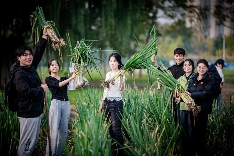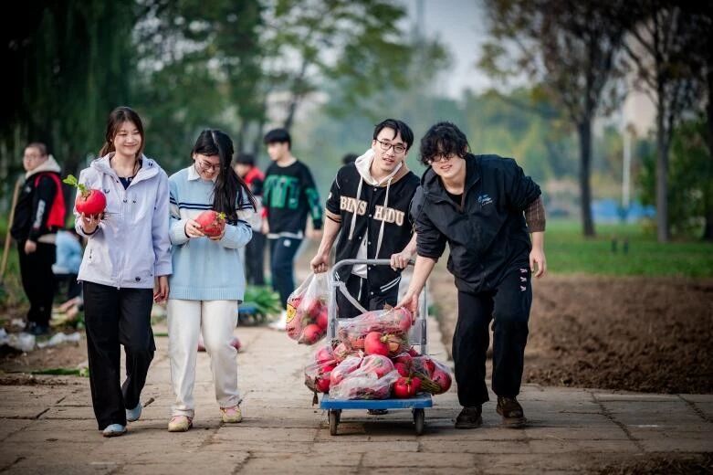 在集体劳动环节,各学院学生在农场指导教师带领下,有序进入“天商农场”,顺利完成大白菜、青萝卜、菠菜、大葱等近十种蔬菜的采摘、称重与转运任务,这不仅是对自身体力的考验,更是对协作能力的锤炼。同学们在泥土的芬芳中,切身感受着“一粥一饭当思来之不易”的深刻内涵。