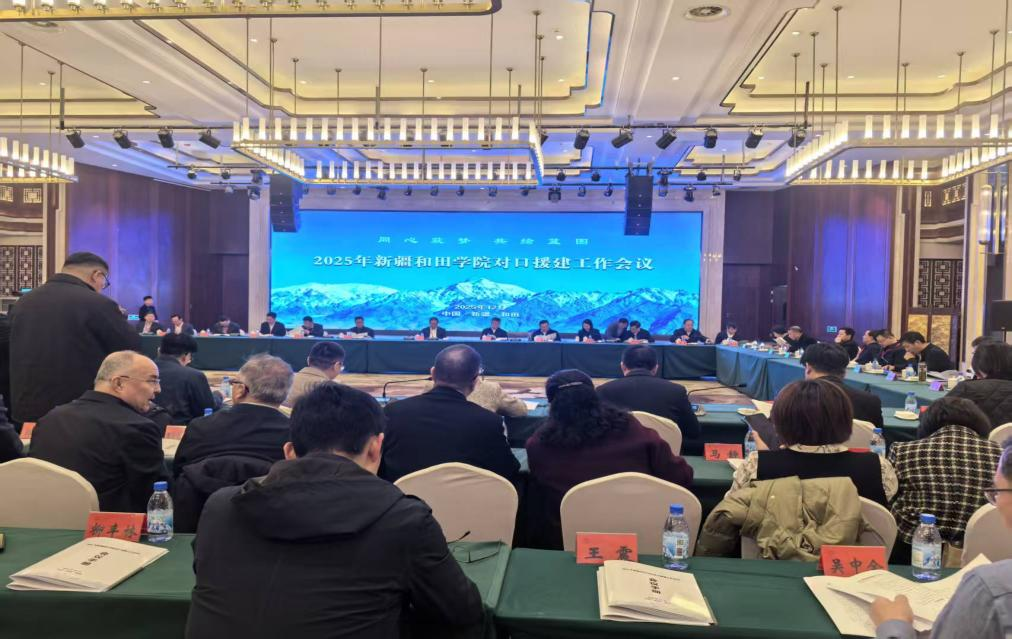 12月10日上午,齐恩平一行在和田迎宾馆参加了2025年新疆和田学院对口援建工作会议。本次会议以“同心筑梦共绘蓝图”为主题,全面落实党的二十届四中全会及第十次全国对口支援新疆工作会议部署,深入学习贯彻教育对口支援新疆工作会议及南疆高等教育发展座谈会精神,总结对口援建工作成效,精准擘画“十五五”时期高质量发展路径。北京、天津、安徽三省市教委及援疆指挥部领导,自治区教育厅,37所对口支援高校代表,地区相关部门负责人,援疆教师代表齐聚一堂,共话援疆深情,共商发展大计。